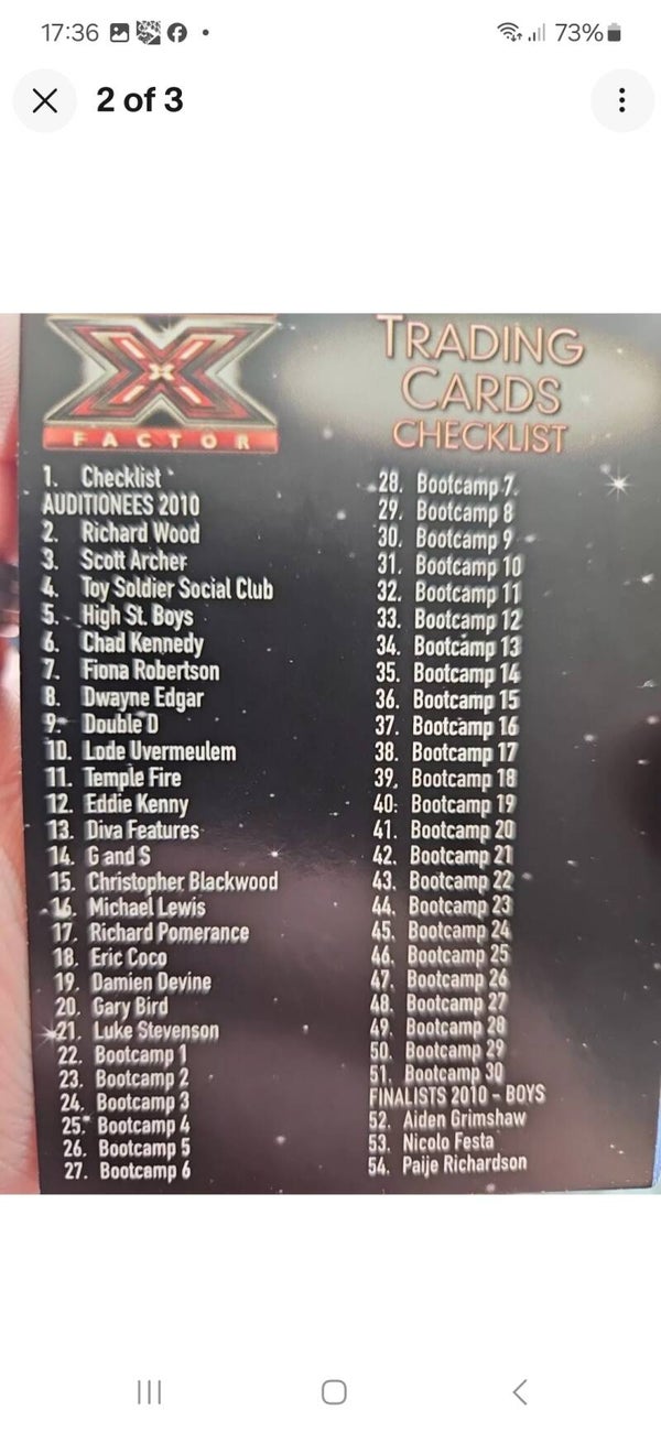 X FACTOR TRADING CARDS FULL BASE SET X99.