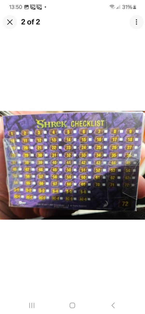 SHREK TRADING CARDS FULL BASE SET X72 BY DART.